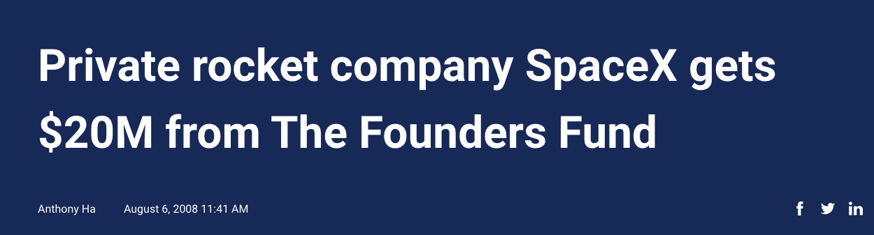 After Musk sold Zip2 for $300 million when he was 28, and PayPal for $1.5 billion when he was 31, he directed his ambition towards two new startups: Tesla, which aimed to replace cars with electric vehicles, and SpaceX, created with the goal of colonizing Mars. Musk originally wanted to send a small experimental greenhouse to Mars; he thought the image of healthy plants flourishing would excite public imagination and lead once again to a larger NASA budget. When he realized that transport for the greenhouse would cost over 60 million, he decided that he would simply start his own rocket company. Six years later, Musk had spent $100 million on the company and its new rocket, but SpaceX was close to shutting down; its first three launches had all flamed out before reaching orbit. Luckily, the Falcon 1's fourth launch was successful, and in 2008 it became the first privately-funded liquid-propellant rocket to reach orbit.